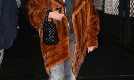 Минулого вечора в Лос-Анджелесі Джастін Бібер помітно продемонстрував кудлатий хутряний топ від Burberry та джинси, забризкані фарбою, з альбому Fear of God....